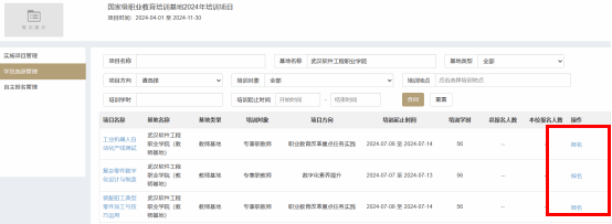第二步:在“国家职业教育培训基地2024年培训项目”中查看所有培训计划,点击“管理”