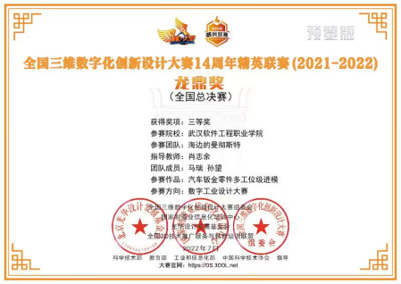 全国3D大赛是在国家大力实施创新驱动发展战略、推动实体经济和数字经济融合发展的时代背景下开展的一项大型公益赛事,大赛秉承“以赛促教、以赛促学、以赛促用、以赛促新”宗旨,多年被教育部正式列入全国高校学科评估体系!此次竞赛经过了初赛、复赛、全国决赛等多个环节,机械学子在比赛中勇于创新敢于挑战,在600多件作品中脱颖而出,最终喜获佳绩。